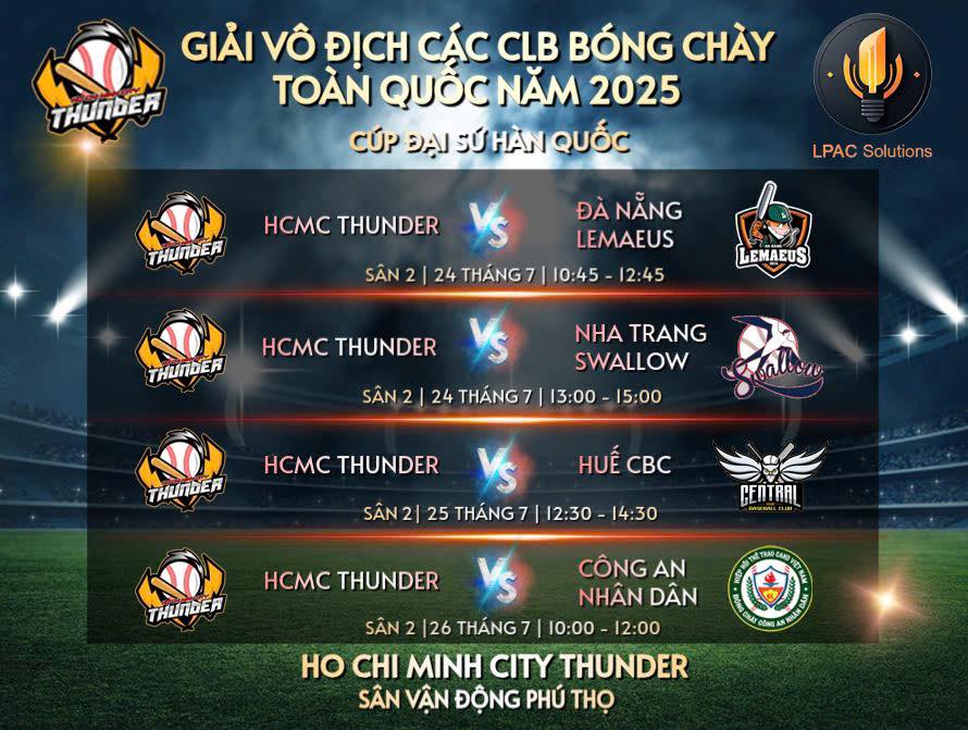 🔥 Lịch Thi Đấu HCMC Thunder – Giải Bóng Chày Toàn Quốc 2025 ⚾️🇻🇳🇰🇷
